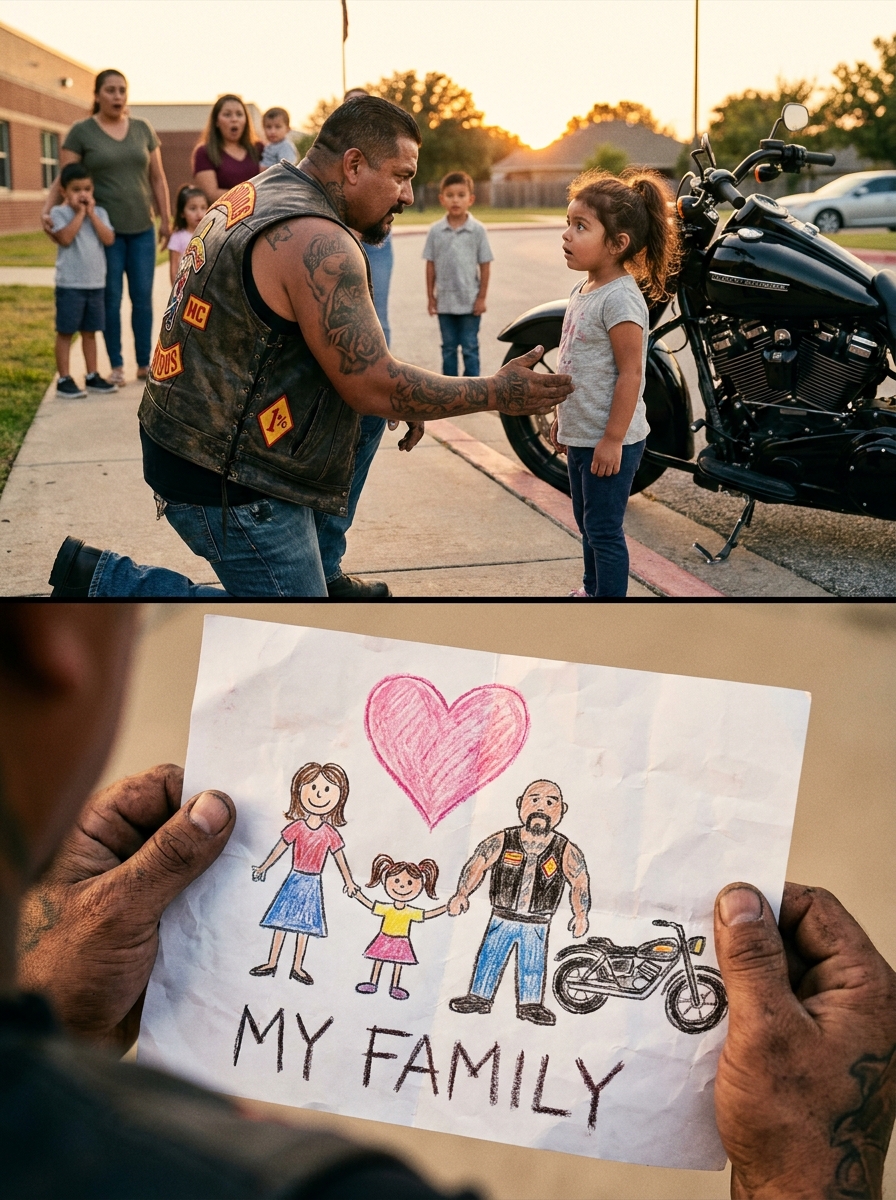 The bullying stopped. Not because Knox threatened anyone. Not because he talked to the kids or their parents. It stopped because at 3:15, when the bell rang, Luna was no longer the girl nobody picked up. She was the girl the giant picked up. The man on the motorcycle. The one with the skulls on his neck and the vest that creaked when he bent down.