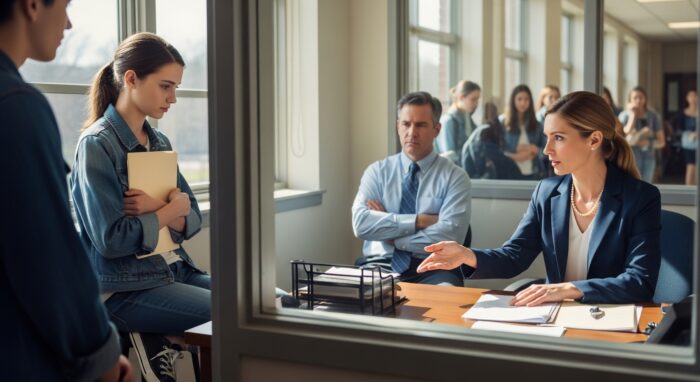 The counselor — a well-meaning woman in her early forties with a pearl necklace and neatly pressed blazer — smiled in a way that didn’t quite reach her eyes.