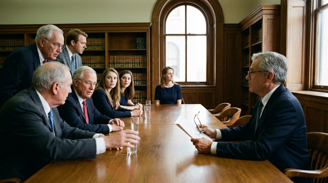 The room smelled like polished wood and old money, the kind that doesn’t need to speak loudly because it never had to. I sat at the far end of the long table, hands folded neatly in my lap, listening as names were called one by one.